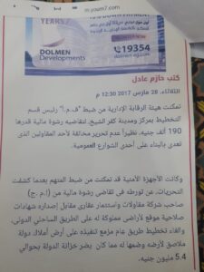 كانت الصحف قد نشرت من قبل تفاصيل التعدي علي نفس الشارع و حذرت من تجاهل تطبيق القوانين في نفس القضية وخاطبنا الرقابة الادارية التي تمكنت من تحرير محضر بالرشوة والتي اقيل علي اثرها مدير التخطيط العمراني الذي قام بالغاء الشارع و ضم الشارع لارض المشكو في حقة ..